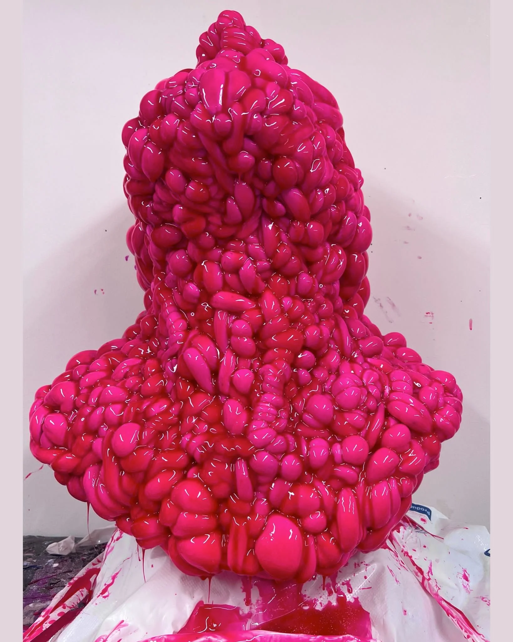 In Gloss and Grievance, Miranda Pissarides stages a deliberate contradiction where seduction meets resistance. Luminous color and viscous resin entice the eye, their wet forms awakening the urge to touch—an impulse denied, sharpening awareness of desire and control.