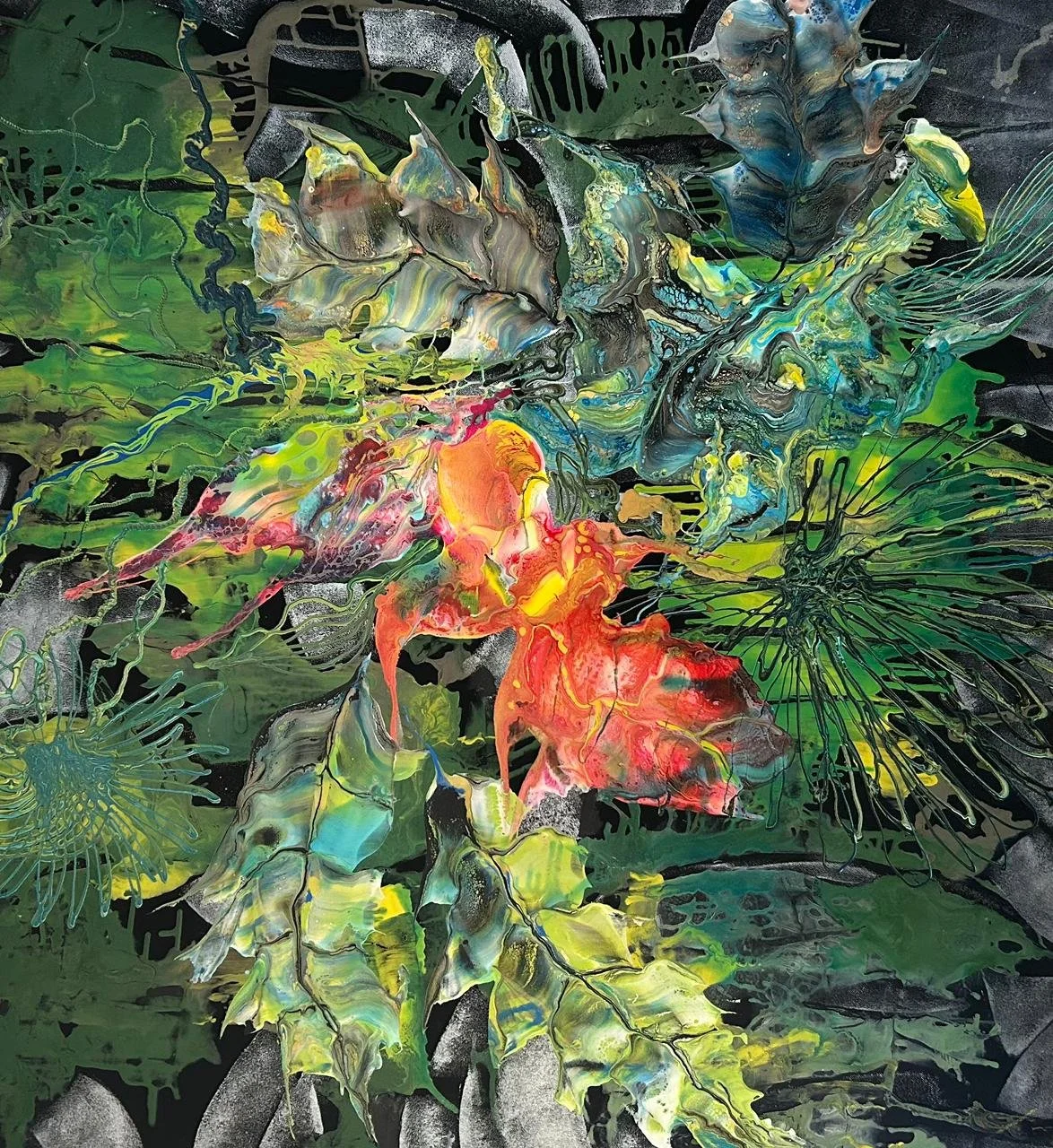 Whispers of a New Dawn invites audiences into a world where colour becomes a living force, where organic forms echo plants, corals, and underwater life, and where nature speaks through radiant, pulsating movement. The exhibition celebrates the quiet power of growth and the promise held in every new beginning. Each canvas is a luminous whisper — a reminder that life unfolds, evolves, and continually reaches toward the light.
