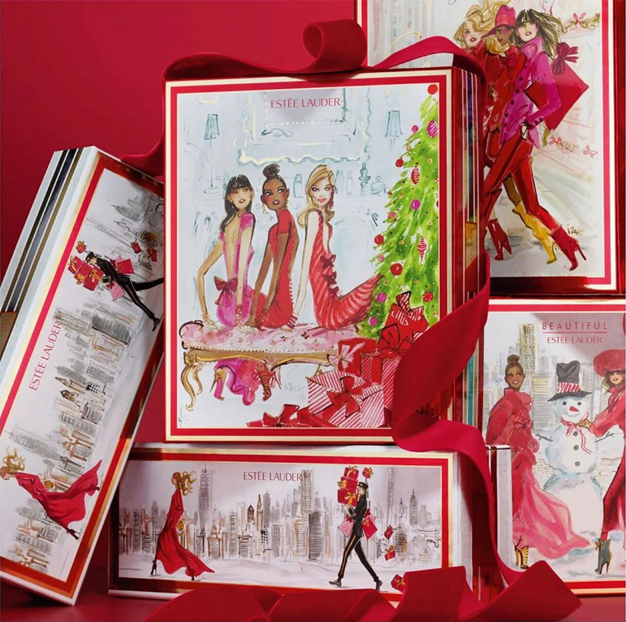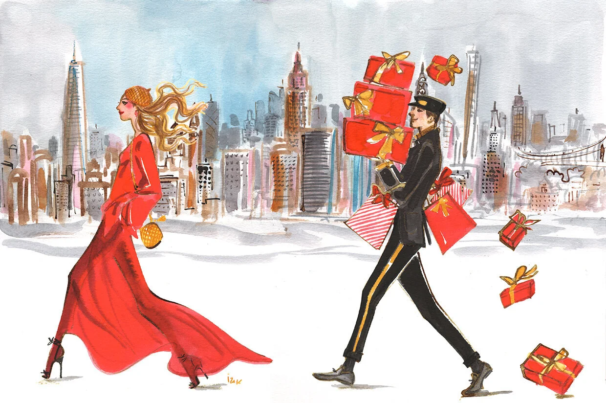 "I was so excited to work with Estee Lauder this campaign. The packaging and in-store campaign was completed more than a year ago. And then Covid hit! With the difficulty in shooting photography, it became apparent that creating a holiday animation using the inspiration of the art I created for them would be an amazing solution.