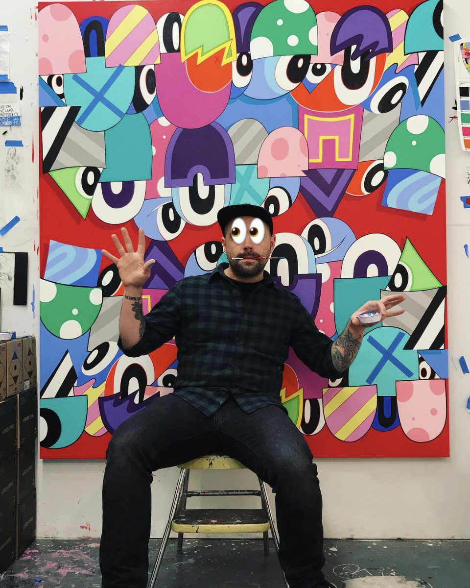 Brooklyn-based, Eric Inkala, is a self-taught artist whose highly visual and ever-evolving style has ripened from graffiti to pop art to contemporary art. His work presents a playful graphic language in the form of a signature character who serves as a vehicle for an autobiographical narrative. It’s through this personal storyline that Inkala is able to channel thoughts and emotions into expressions of shape, color, and text. His universally approachable concept is amplified through increasingly complex patterns and symmetry, which over the years have reflected both the abstract escapades of his trademark character and Inkala’s own artistic journey.