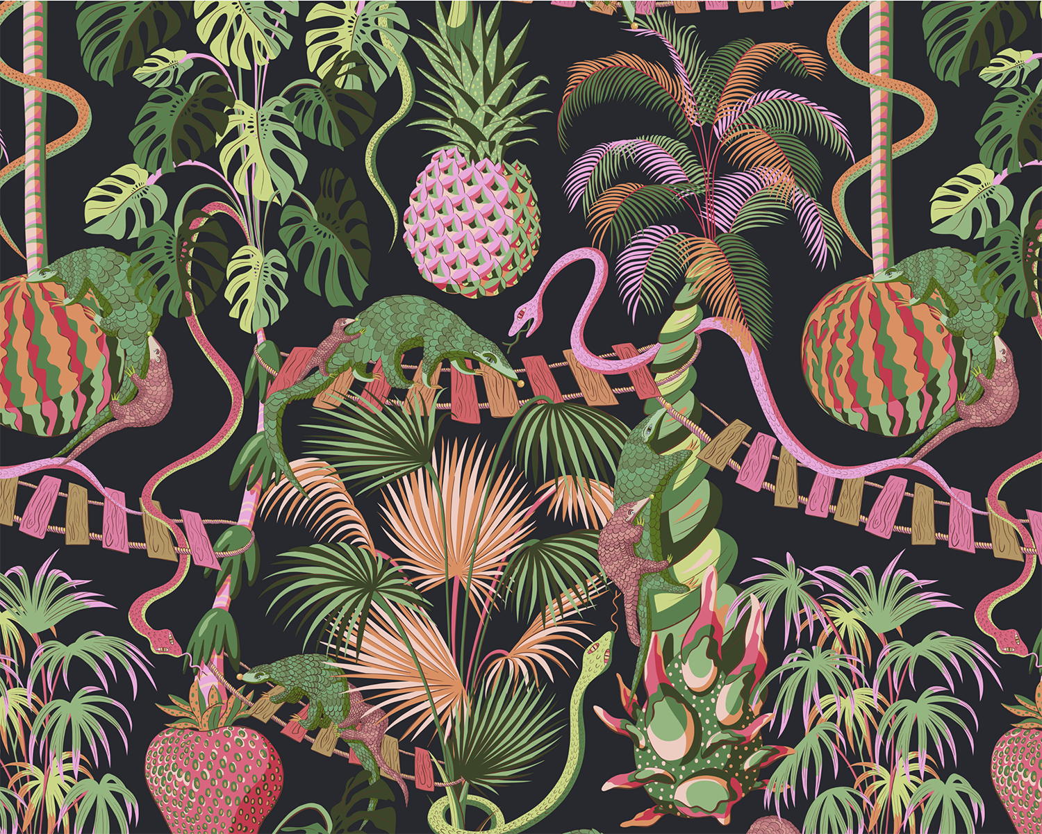 Precarious Pangolins was created for the rebranding of Palladio Fabrics and was produced on wallpaper as well as printed on fabric.