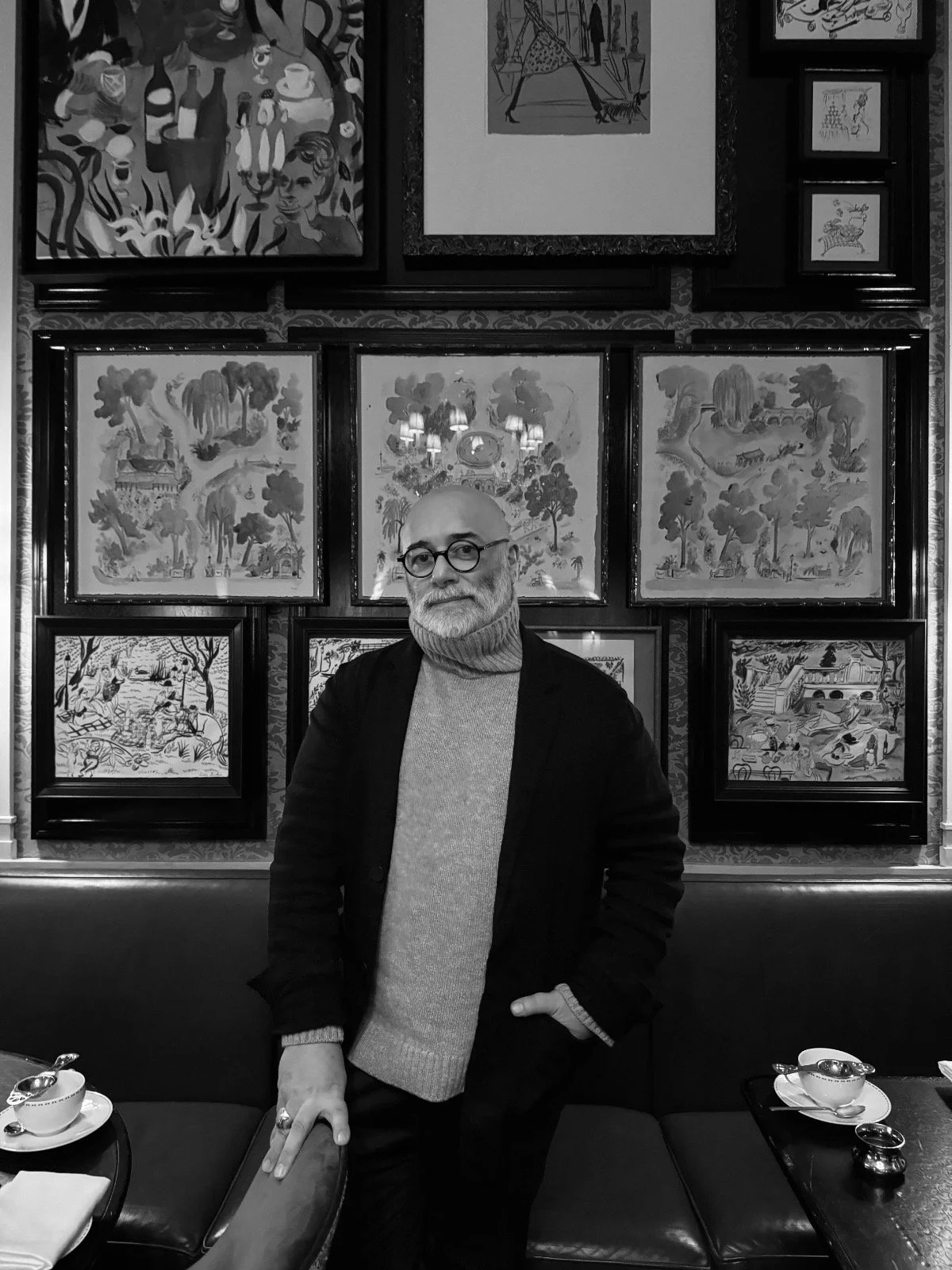 Izak Zenou in residence at The Carlyle Hotel where he’s spending a year drawing guests at Dowling’s and contributing to the visual life of the room. He brings that same sensibility back to the city that embraced him 25 years ago—Upper East Side charm, wit, a certain ease. Paris meets New York.